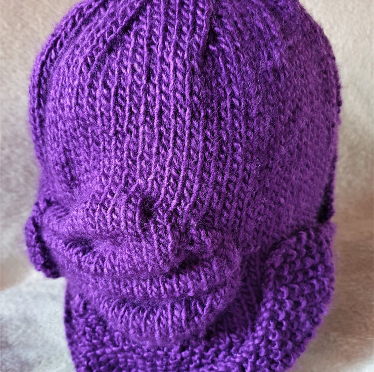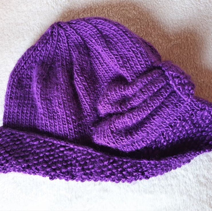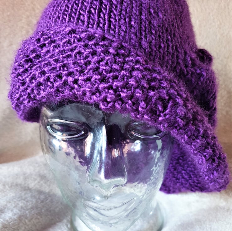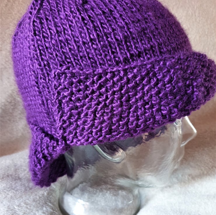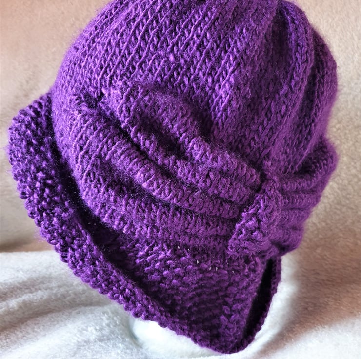 Keep warm with this gorgeous, purple coloured, vintage style cloche hat with it's asymetric design.