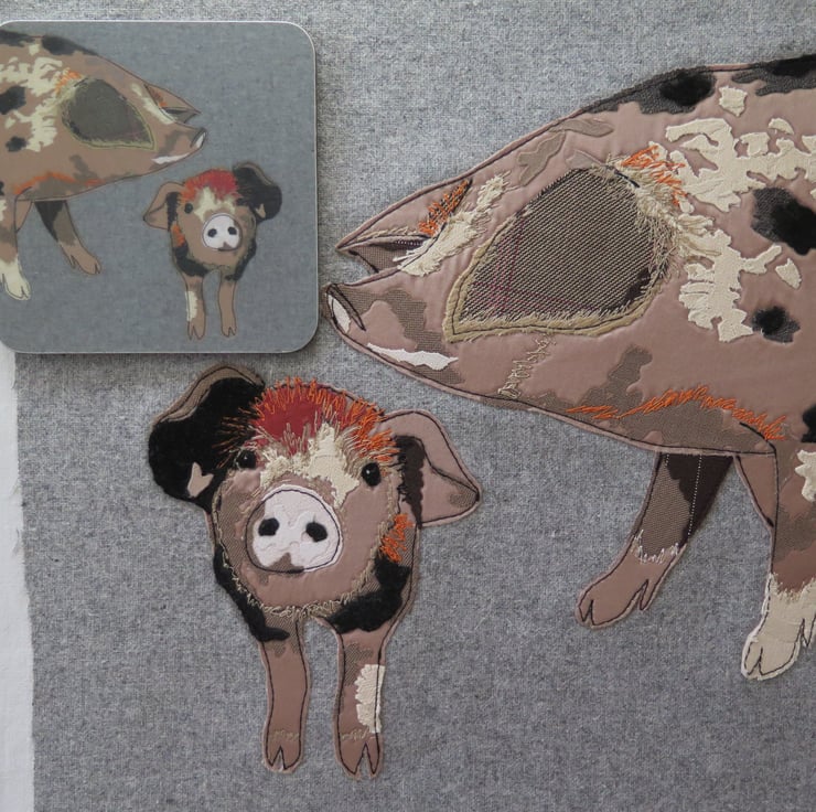 My designs are inspired by British wildlife. I create them using a combination of appliqué and freehand machine embroidery. The designs are then scanned and digitally printed on coasters and greetings cards, and are all listed on my Folksy shop.