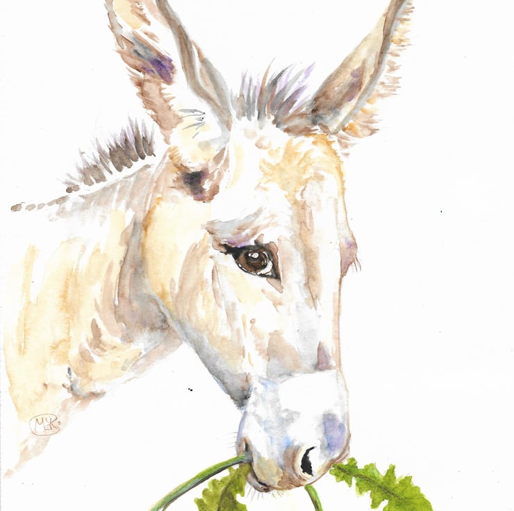 A sweet donkey face original watercolour on quality art paper.