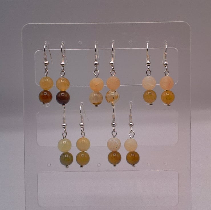 - 3 pairs of olive green fluorite and cracked agate beaded earrings