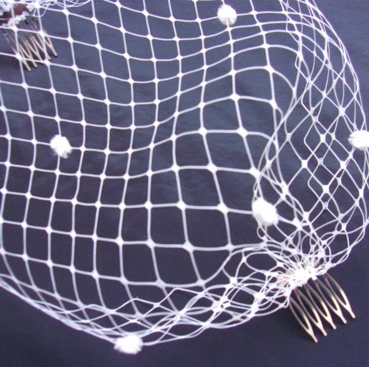 I can offer a wide range of veiling types including, classic Russian, Merry Widow, mega Merry Widow, spotted, pearl & rhinestone merry widow, vintage waffle weave, tulle and lace.