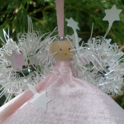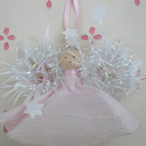 This cute fairy is made from a vintage style dolly peg and would look great hanging on a Xmas tree. The tinsel and stars wings contain wire, so they can easily be shaped.