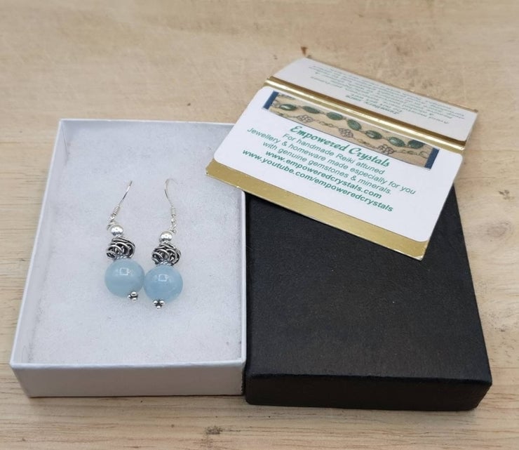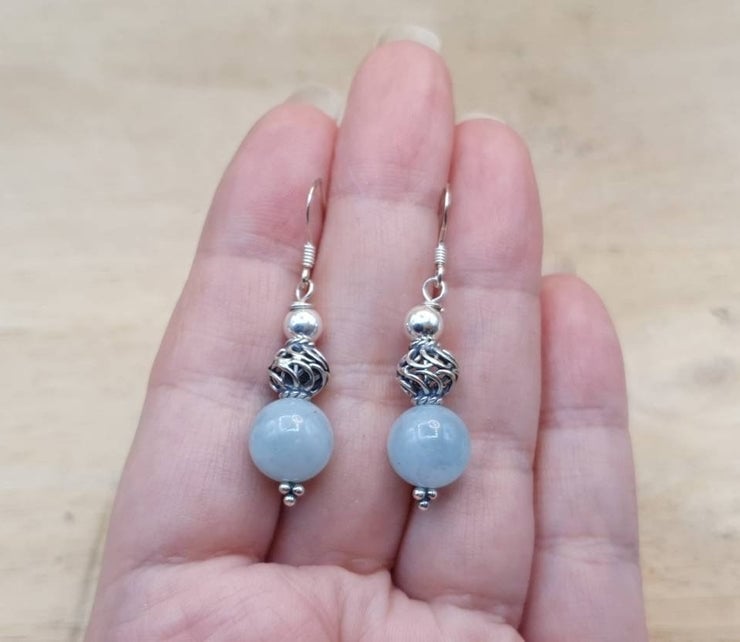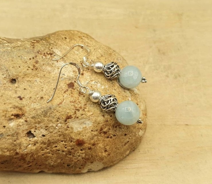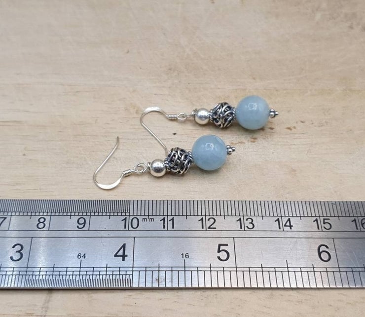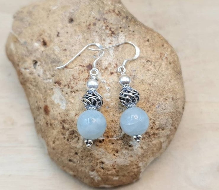 These are Bali silver cone Aquamarine earrings that I've made with handmade Bali silver beads. Bali silver is up to 99% silver but is not hallmarked or stamped.