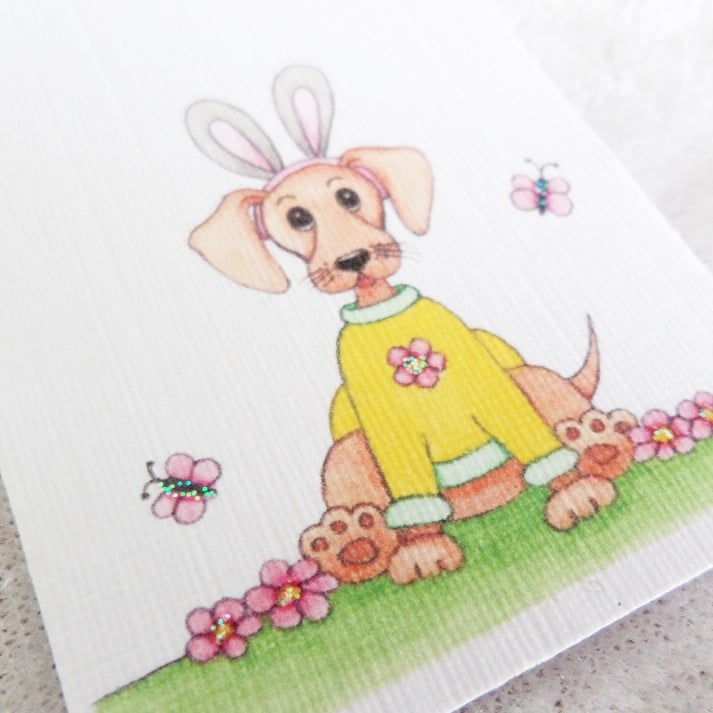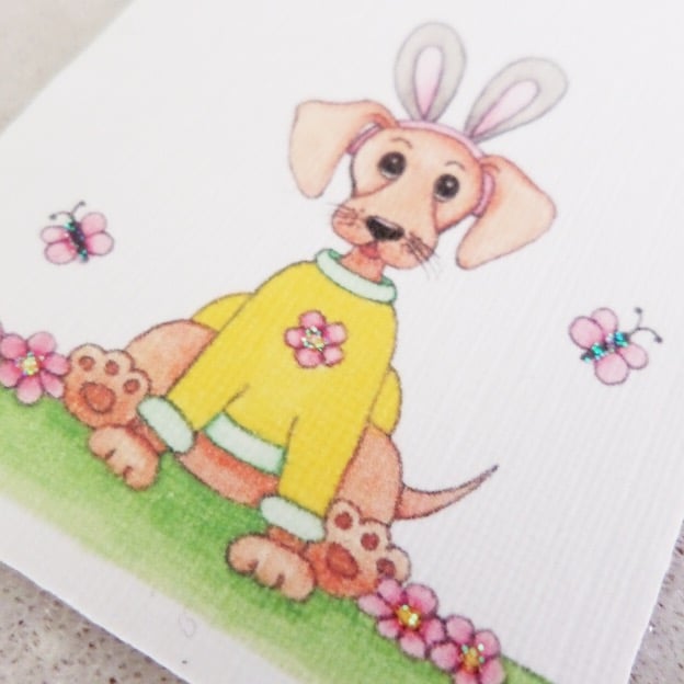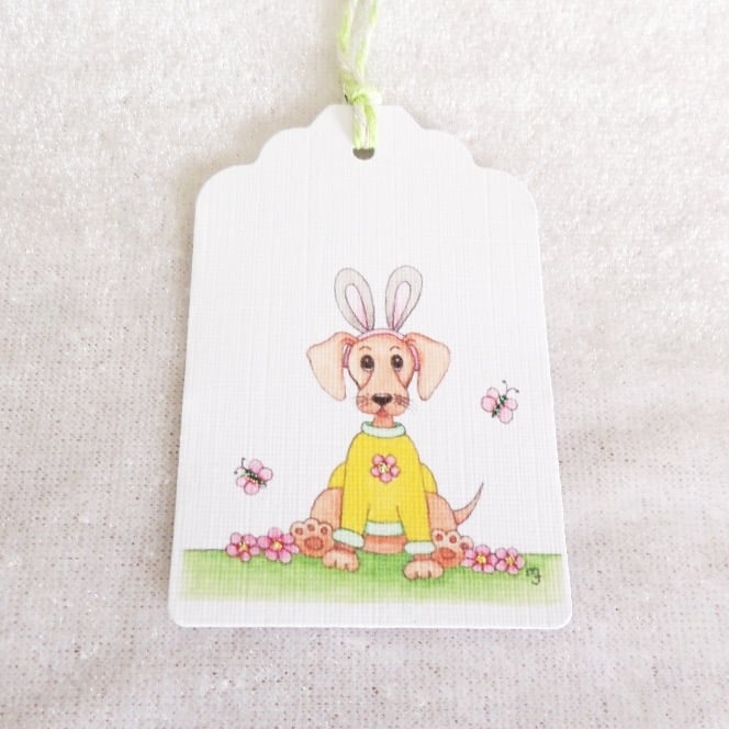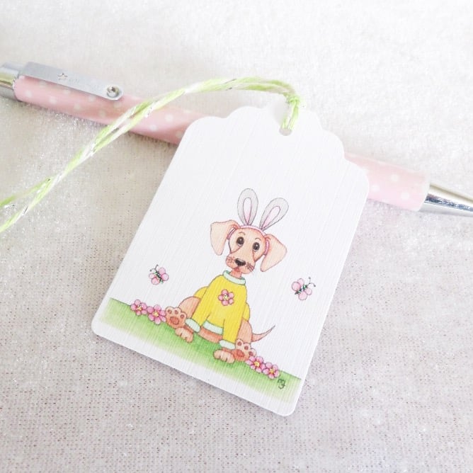 These cute Easter ‘Dash’ dachshund gift tags have been designed using my own original watercolour illustration. I have designed them to match and compliment my handmade cards in the same design.