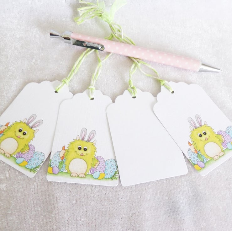 These cheeky Easter Little Monster gift tags have been designed using my own original watercolour illustration. I have designed them to match and compliment my handmade cards in the same design.
