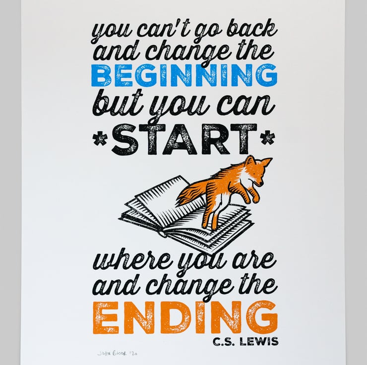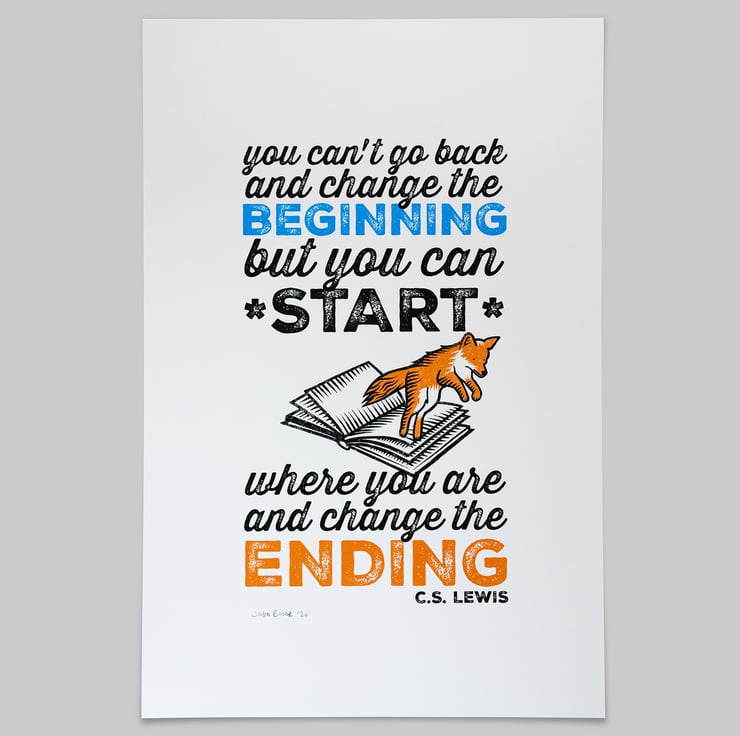 This "Change The Ending" quotation screen print is from a quote by the writer C.S. Lewis. Each one is signed by me.