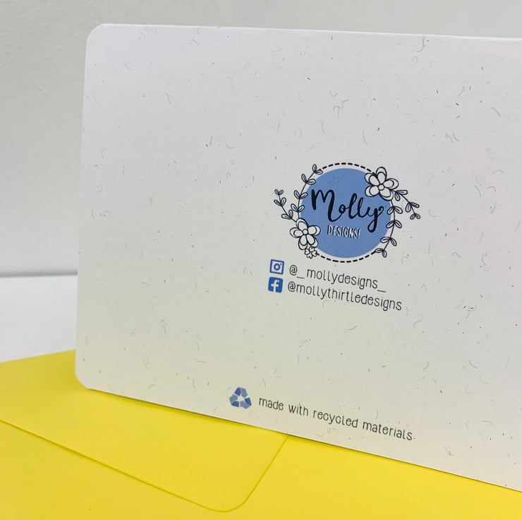 Treat your Mum this Mother’s Day to a hand drawn card (size 160mm x115mm) printed on to 100% recycled materials with a bright coloured recycled envelope. All cards are blank inside for your own message.