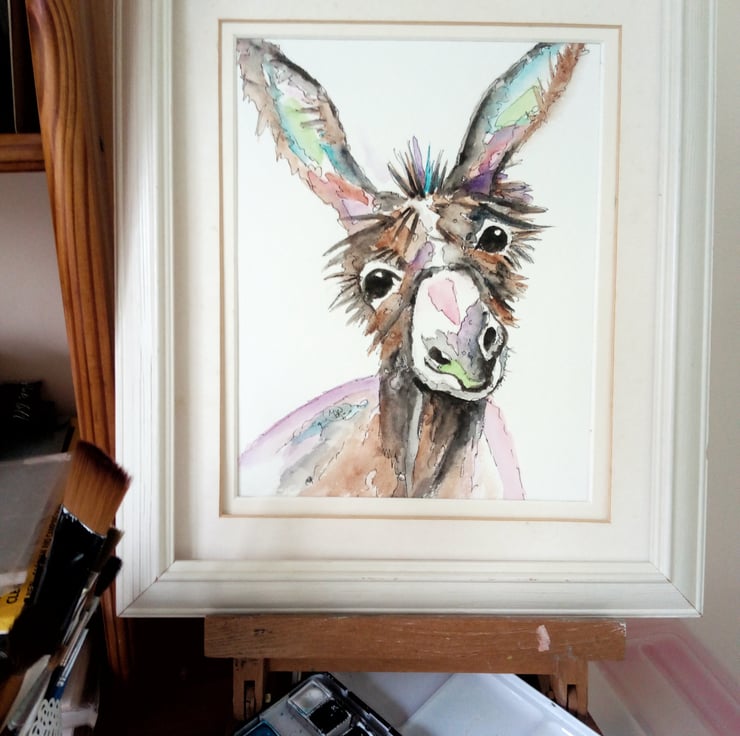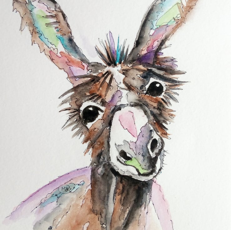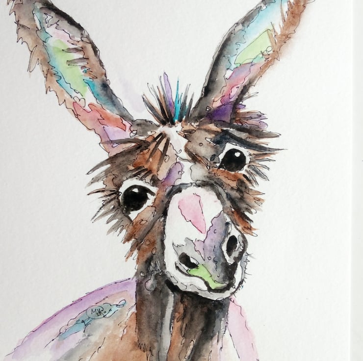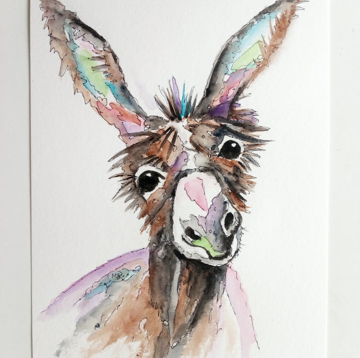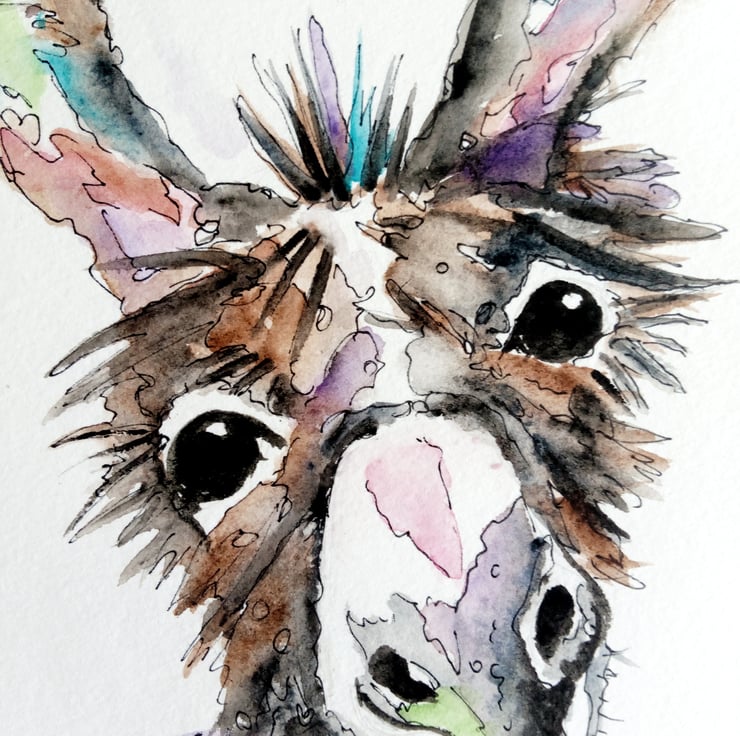A very cute donkey original watercolour painting on quality watercolour paper. I use professional watercolour paints for this donkey portrait.