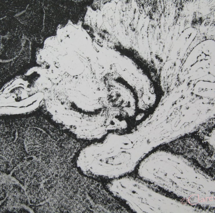 Hand printed on 300gm acid free watercolour paper in blue/black oil based ink..