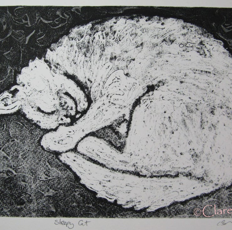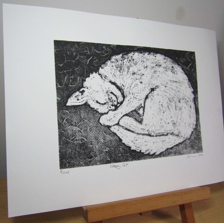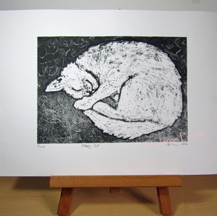 Collagraph Cat Print variable edition, limited edition of 15, this is number 2.