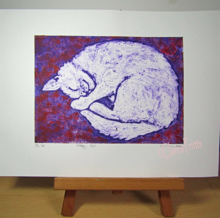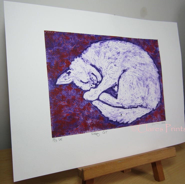 Collagraph Cat Print variable edition, limited edition of 15, this is number 4.