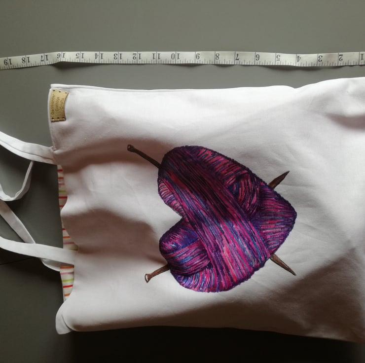 This bag is ideal for any knitters in your life. It's a great mother's day gift or something unique for yourself. Use it for yarn shopping, knitting projects or general stashing.