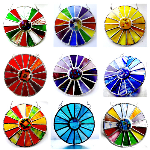 I designed this sunny yellow colour scheme of my Colour Wheel suncatcher on a grey rainy weekend just after the Autumn equinox when I suspected we had seen the last of the year's summer sunshine. This will remind me of it.