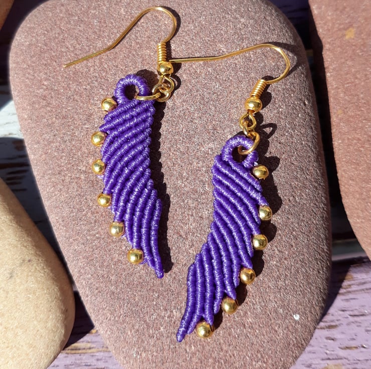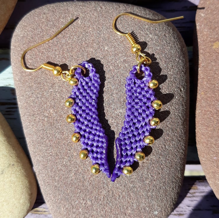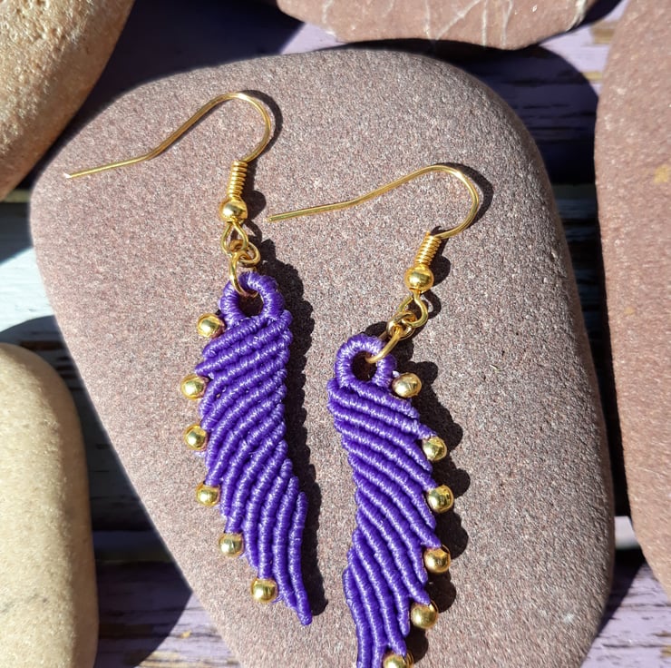 When I began making these earrings I was watching Lucifer. I hadn't expected to make angel wings, it just sort of happened subconsciously. Since making them I have had the knotting bug and have made them in all different colours.