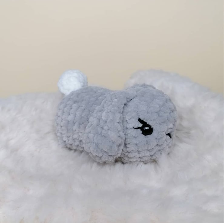 The bunny measures 11cm from nose to fluffy little tail, and about 10cm wide (without stretching out her ears).
