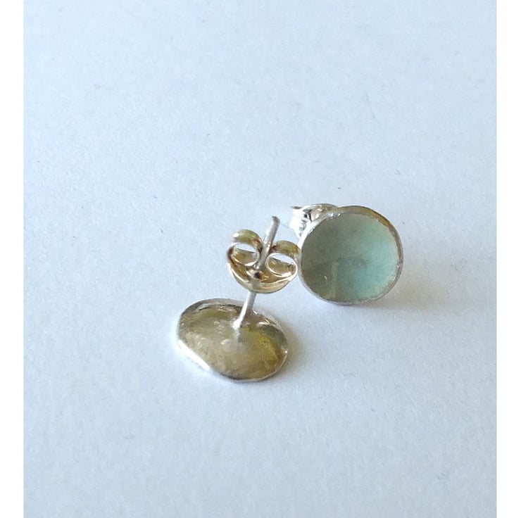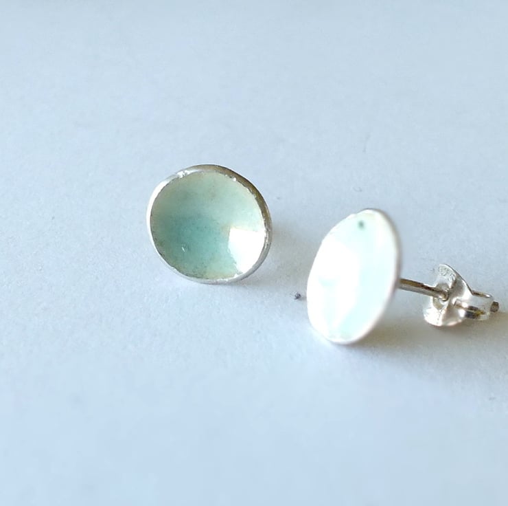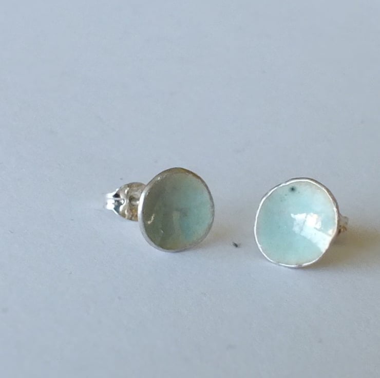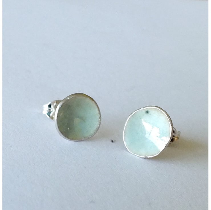 Very pale blue, 'eau de nil' coloured vitreous enamelled silver post earrings