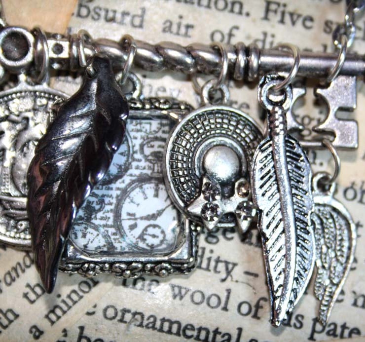 - silver tone feather charm