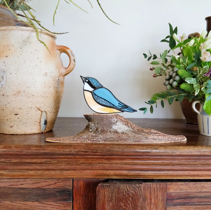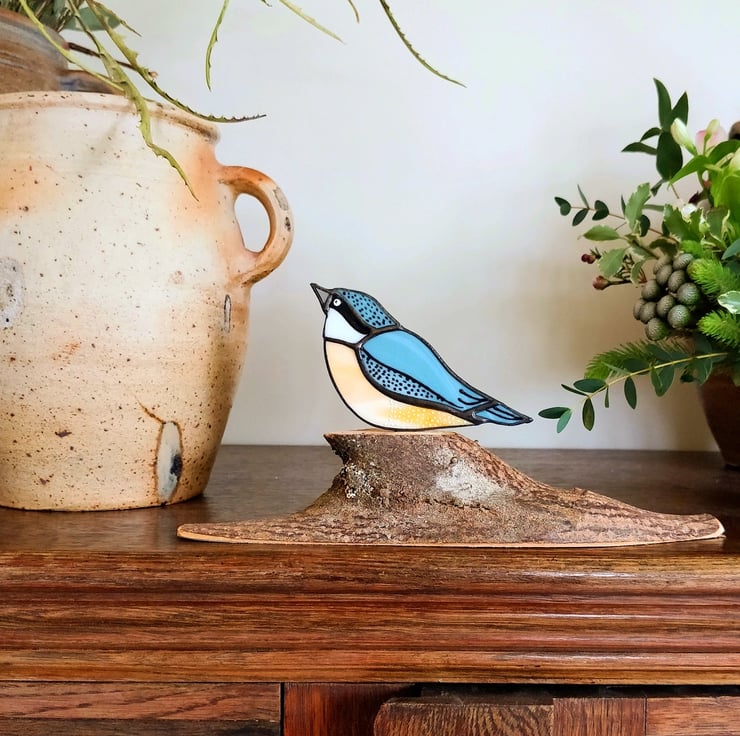 Beautifully illustrated and handcrafted in stained glass this little suncatcher would make a gorgeous, fun addition to any home. Whether displayed on your favourite shelf or shinning bright in front of your window. This little bird is a great way to introduce some colour and create a more contemporary, curated space within your home.