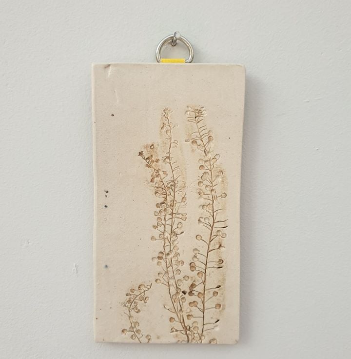 Approx 14x7cm, this one-off ceramic wall tile is decorated with real wild flowers impressed into the clay.