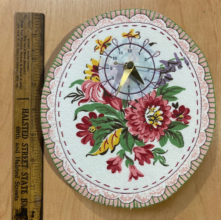 I’ve been making clocks from vintage fabrics for about three years. People love to collect beautiful vintage fabrics, but what do you do with them?