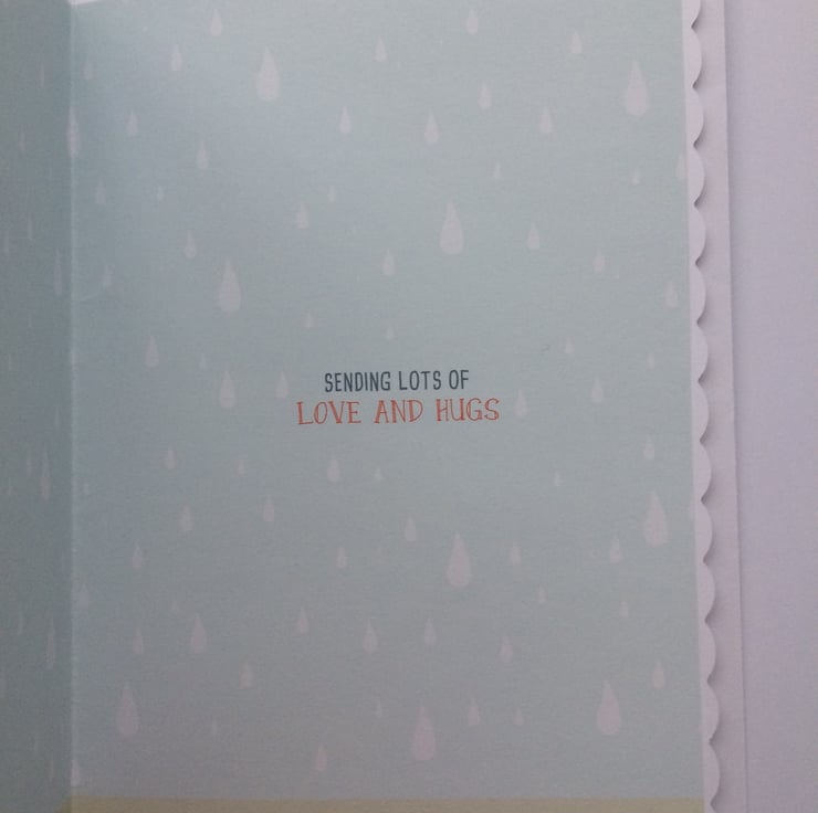 The card has a full-colour double insert on the inside which matches the front of the card with a printed greeting that says "Sending Lots of Love and Hugs" and there is plenty of room for you to write your own special message.