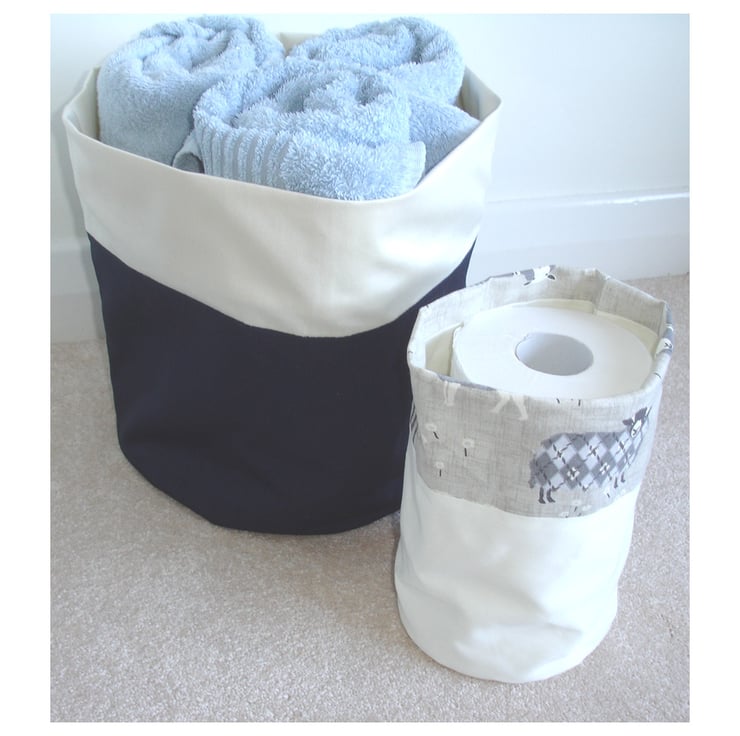 Lined with a soft dark grey chenille fabric to keep it's shape. Sizes shown are with the top rolled down once so you can ring the changes and add approx 2" height by leaving the top unrolled.