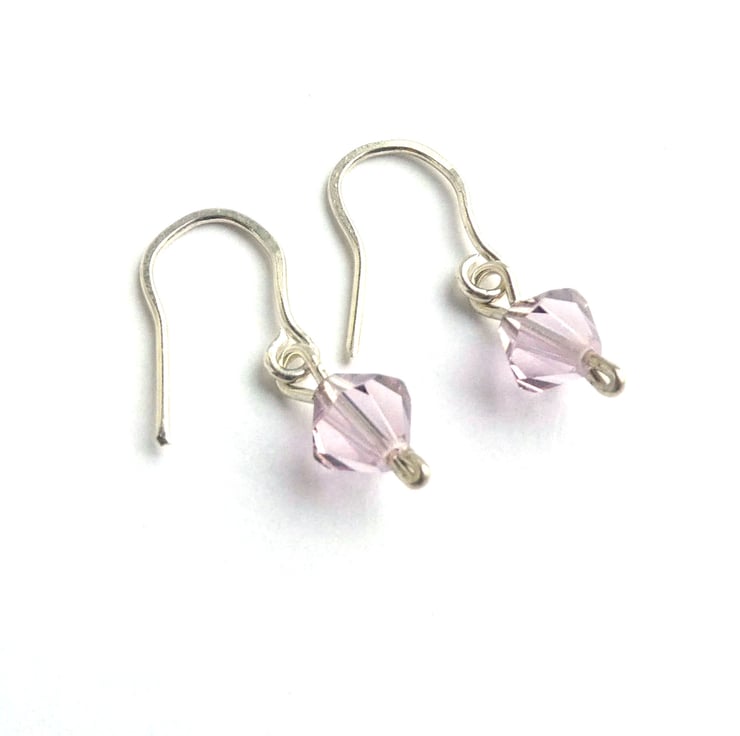 Mauve faceted Swarovski crystal bead measuring 6mm, with sterling silver hooks.