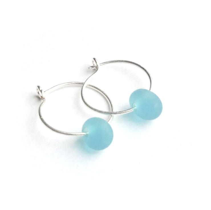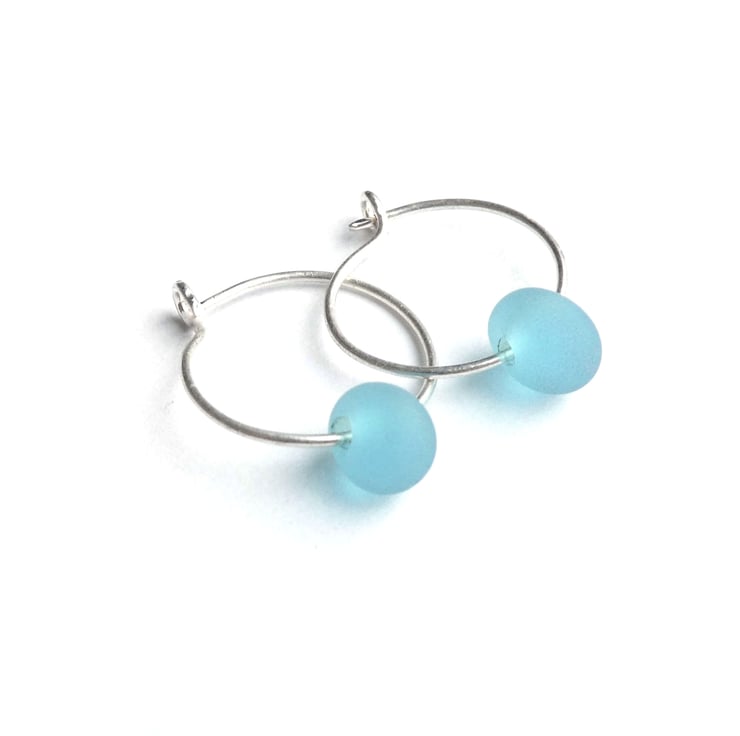 Turquoise frosted drop glass bead measuring 7mm with sterling silver sleepers.