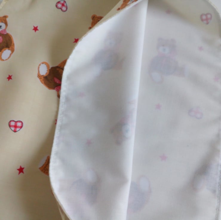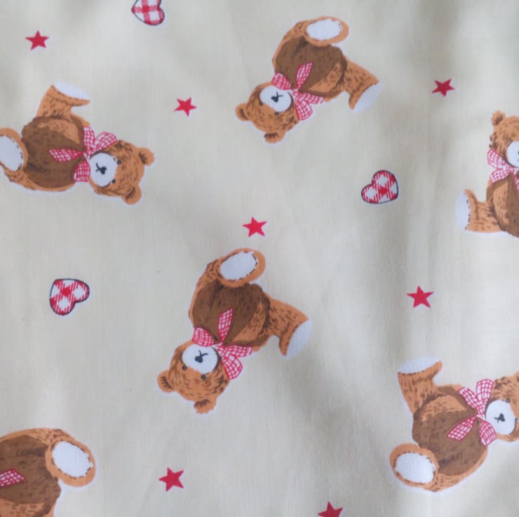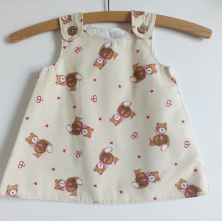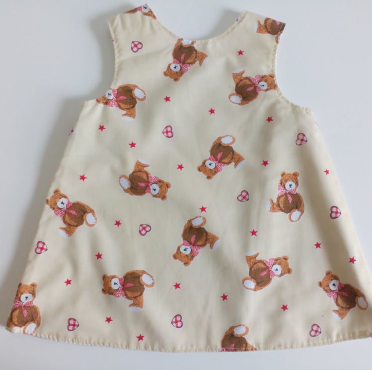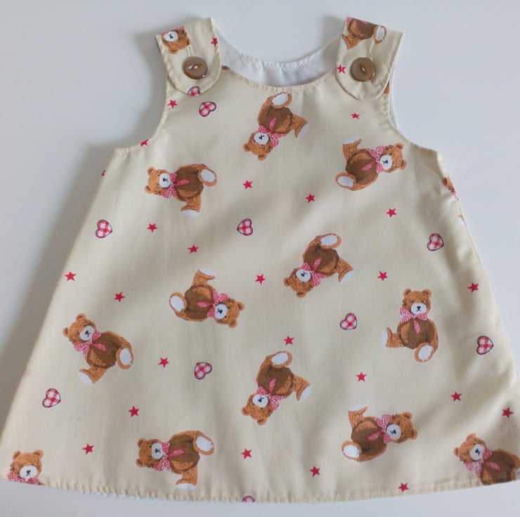 A Lined, A line style dress/pinafore with a Teddy Bear design.