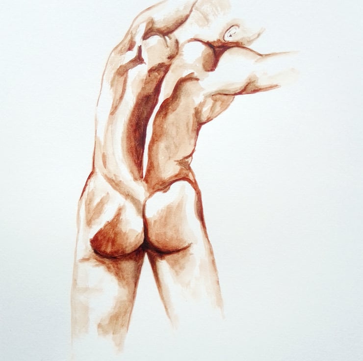 A nude muscular man, an Adonis. Original watercolour painting on quality white paper