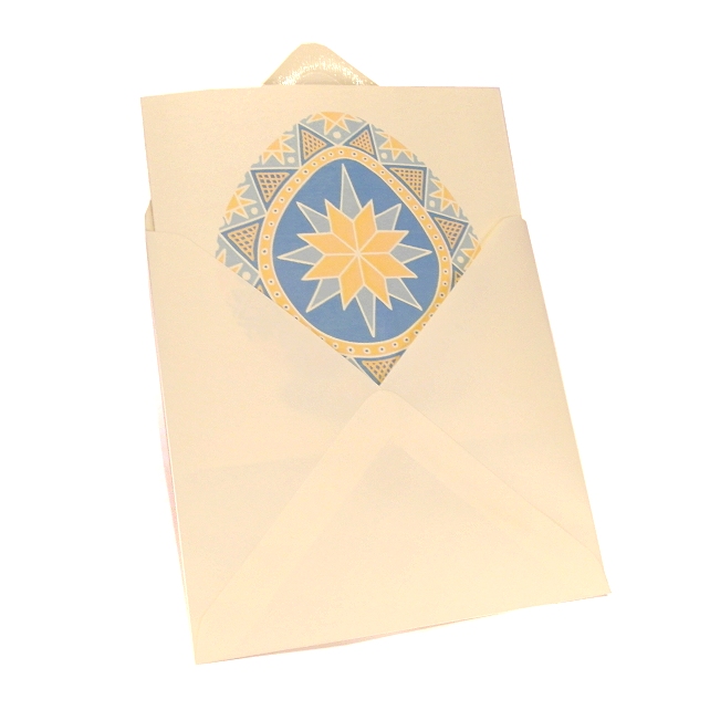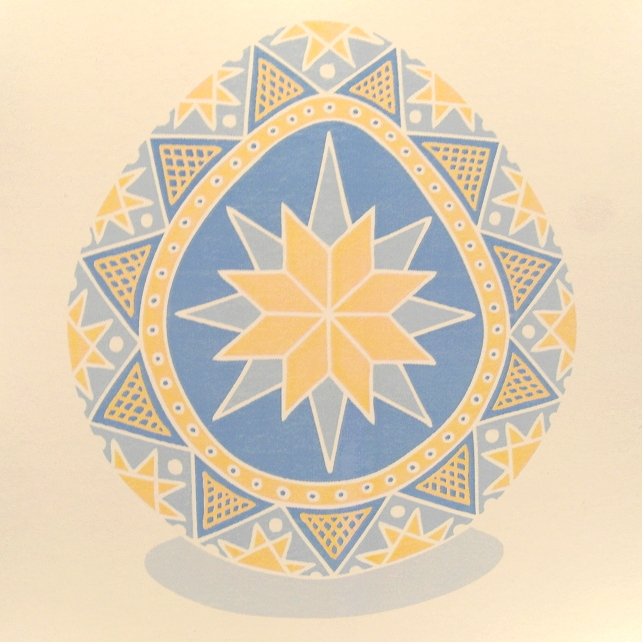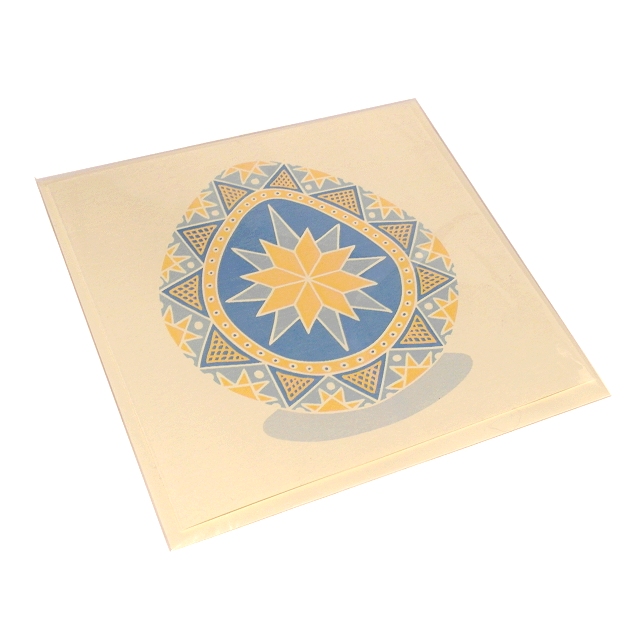 The original pysanky design by Kim Onyskiw is printed on a 15cm x 15cm (6" x 6") square ivory card, and comes with an ivory envelope.