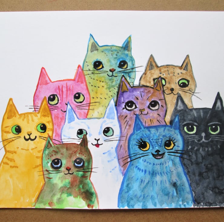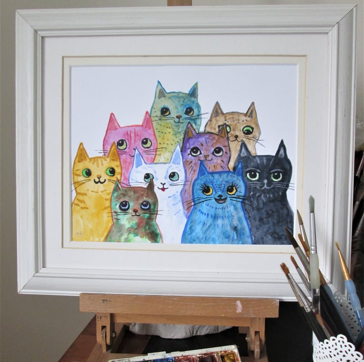 NOW SOLD:  Colourful Cats together painting