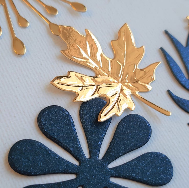 A pack of 20 die cuts, handmade from pearly, glittery and mirror card. Sizes range from 1x3.5cm to 4x12cm (tall berry branch).