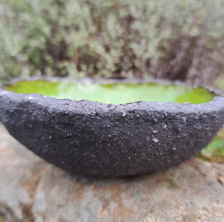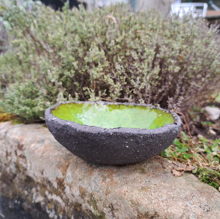 This is one of my favourite pieces to make. I hand build these bowls with the black chunky clay that I love working with. The inside is glazed with a vibrant glaze, giving a great contrast to the black,unglazed body of the bowl.