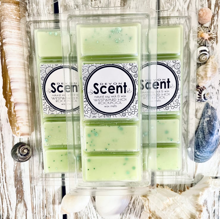 Inspired by fresh scents of the North Devon coastline, our highly fragranced Westward Ho! Rock Pool Snap Bar Wax Melts have a green fruity floral fragrance with overtones of green avocado and sea salt, with notes of hawthorn, cherry, fig and vanilla.