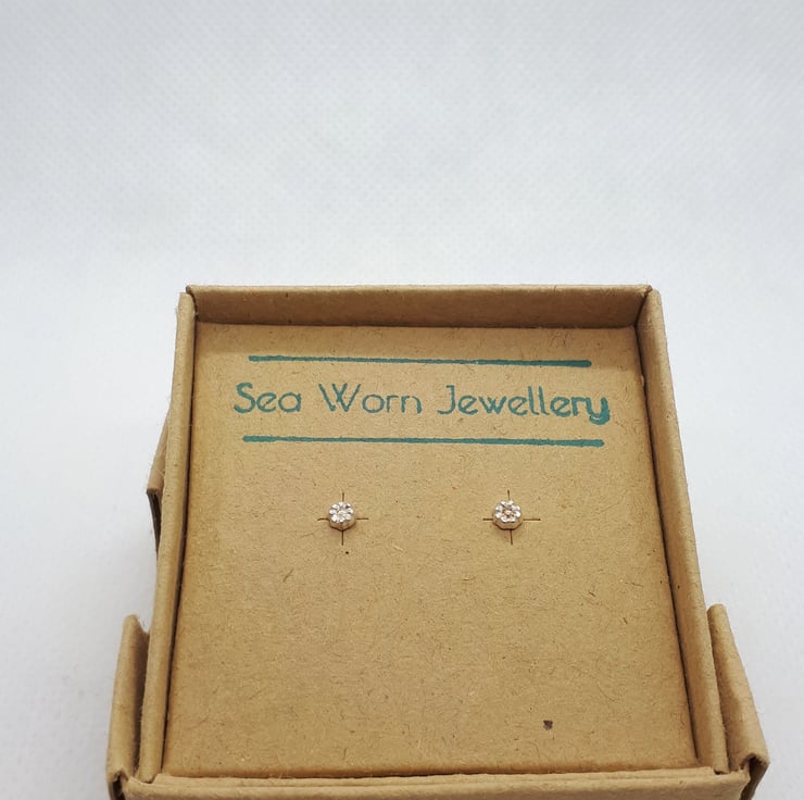 Tiny fine silver daisies with sterling silver posts and scrolls.
