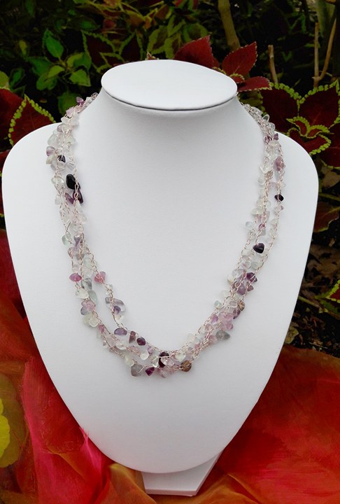 I love using different jewellery making techniques like crochet and the amazing array of colours in this fluorite gemstone.
