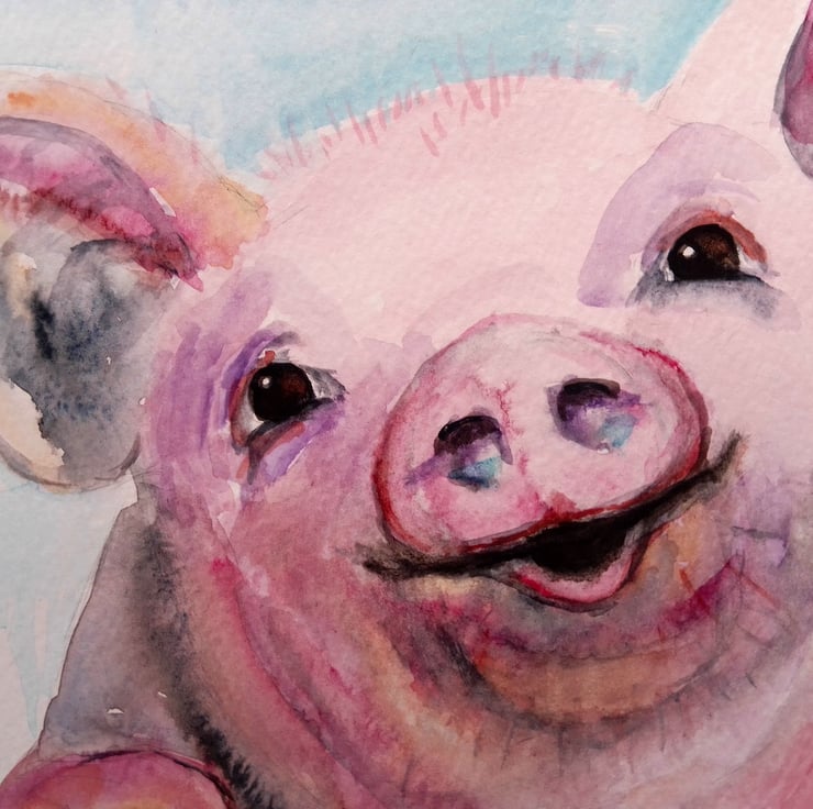 A sweet and cute little pig painted in soft colours. Gift idea for children and babies. Lovely gift idea for those loving farm animals and pigs.