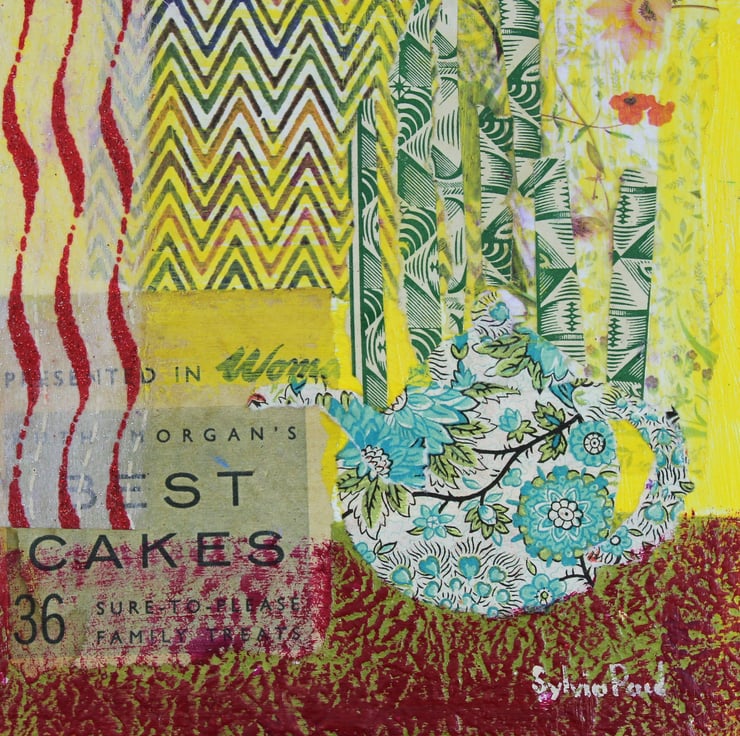 I have been painting for more than 40 years. My collages are all sizes and subjects from still life to street scenes. Most are created from my imagination allowing a more abstract approach. They are fun to do especially the small ones.