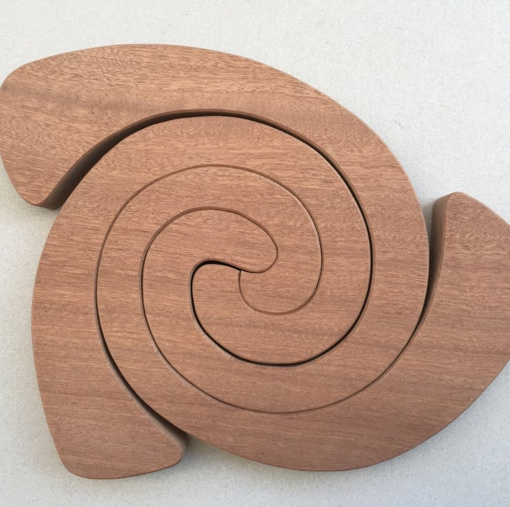 Curly Wurly Trivet, designed and handmade by me from Sapele (dark coloured hardwood of the Mahogany family) or Tulipwood (light coloured hardwood of the Poplar family).