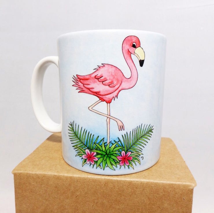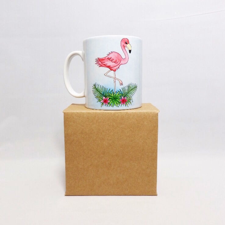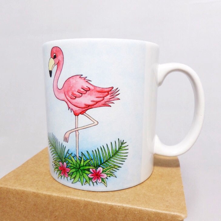 This quality ceramic mug features my original flamingo artwork, professionally printed to the highest standards.
