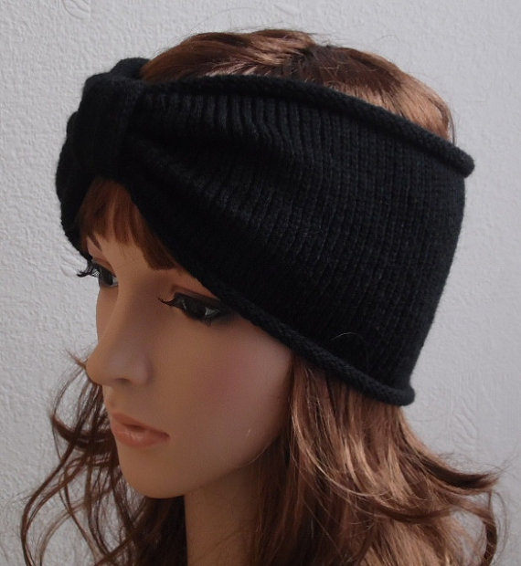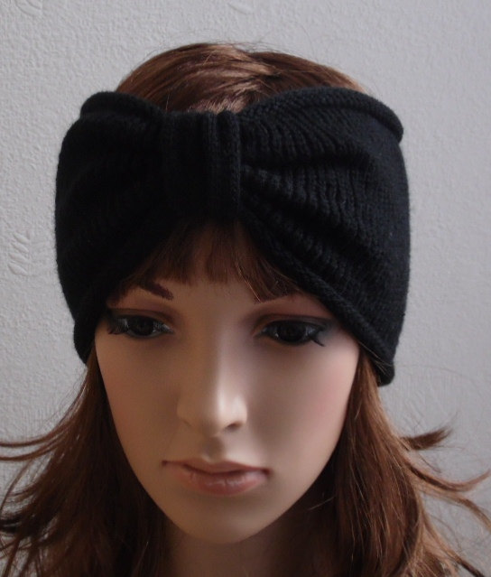 Black knitted headband for women, handmade ear warmer, wide headband.