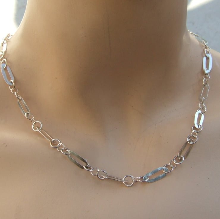 This handmade Sterling Silver chain measures 18 inches long and fastens with a lobster clasp and has been polished to a high sheen.