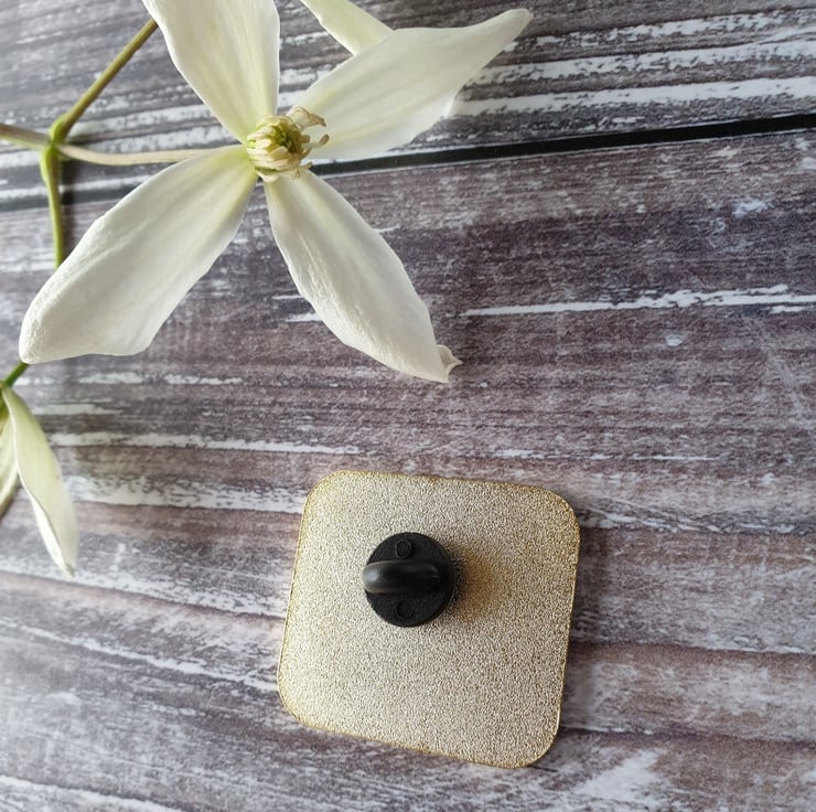 Designed by me in Shropshire and manufactured in Birmingham, these pins are 35mm and feature gold metal and 3 shades of hard enamel. The pin comes complete with a rubber plug pin back.