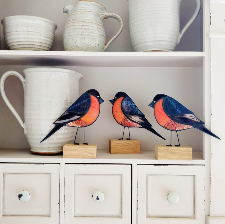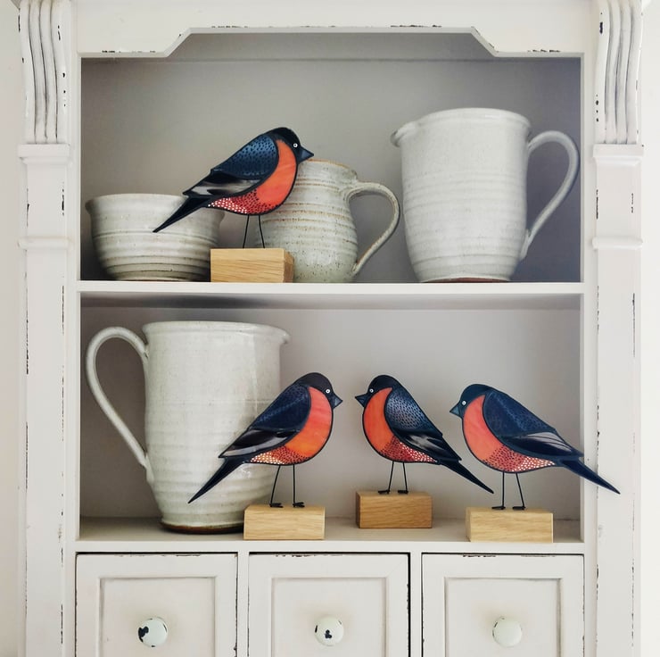 Please be aware that each bird is handmade and the colours, textures and paintwork will vary slightly from this photograph. The wooden blocks are reclaimed and so the type of wood may differ from this image too.
