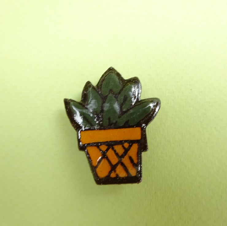 Show your love of cacti with this little lush green plant pin badge.