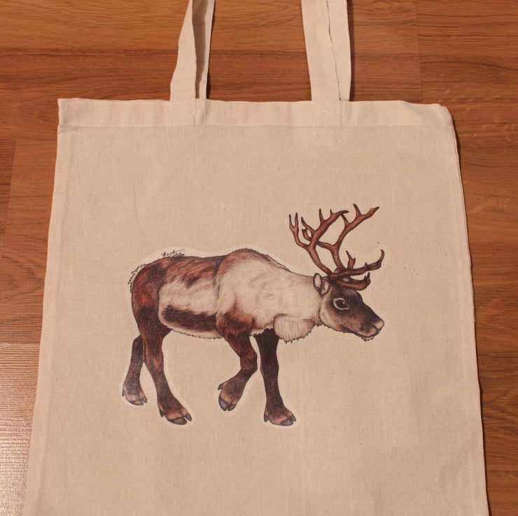 Featuring my very own Reindeer drawing, this fabric tote bag measures roughly 38cm x 40cm making it a great size for carrying your stuff such as food shopping, craft supplies, books, and more, all while showing off your love for reindeers.