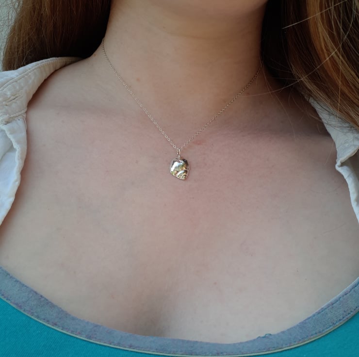 I loved the size and detail of the shell, so I took an impression using Siligum. I then used a compound called silver clay which is recycled pure silver combined with a little binder and water to mould the shell. This was left to dry completely then fired in my kiln, which burnt off the water and binder leaving pure fine silver.
