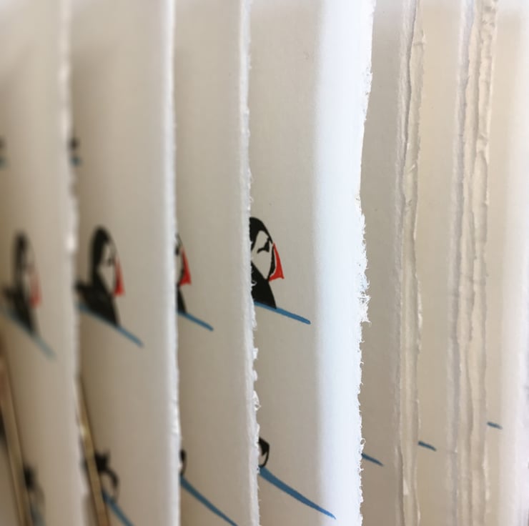 This colours are Puffin Black, Beak Red & Calm Sea Blue - The photos disguise the soft matt quality of the paper & ink