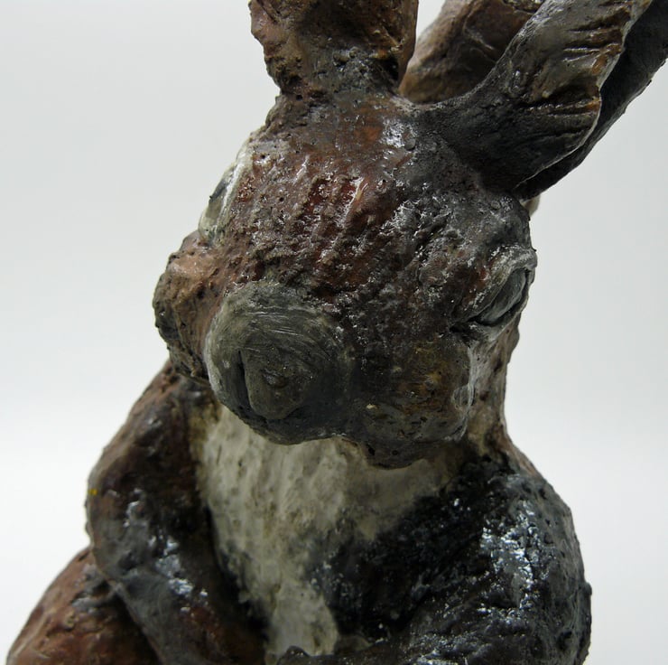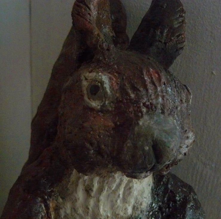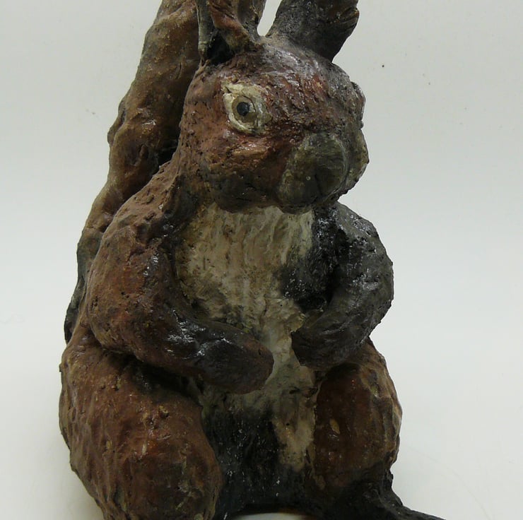 Hand-built & painted, once bisque fired it was raku fired. Squirrel. 22 x 16 cms.
